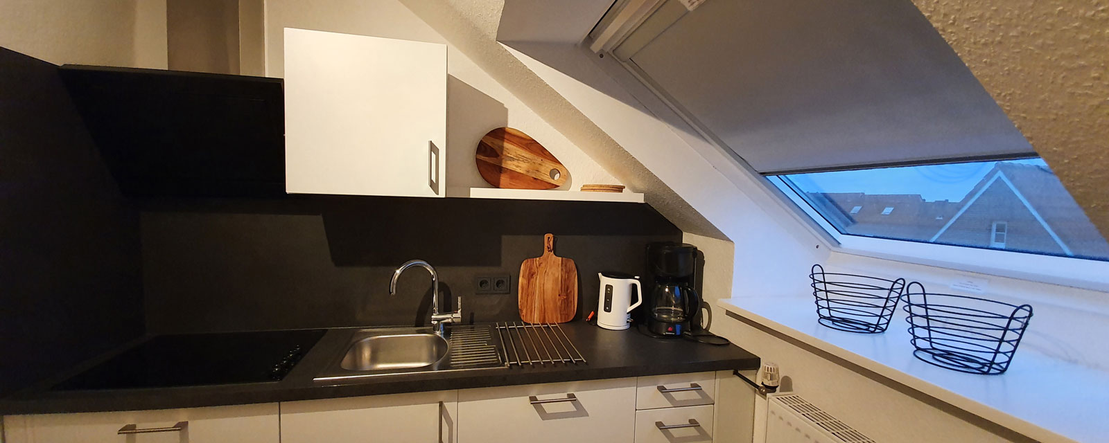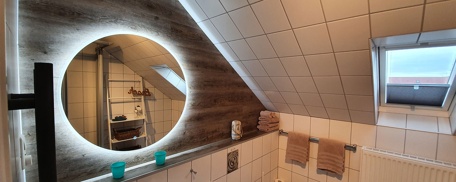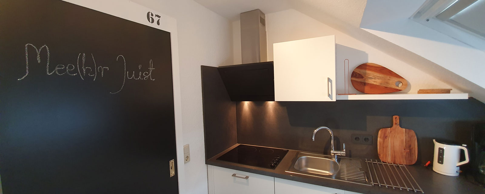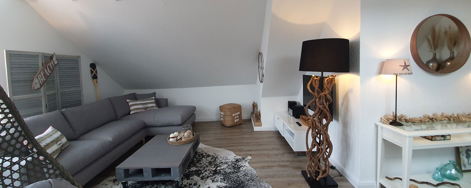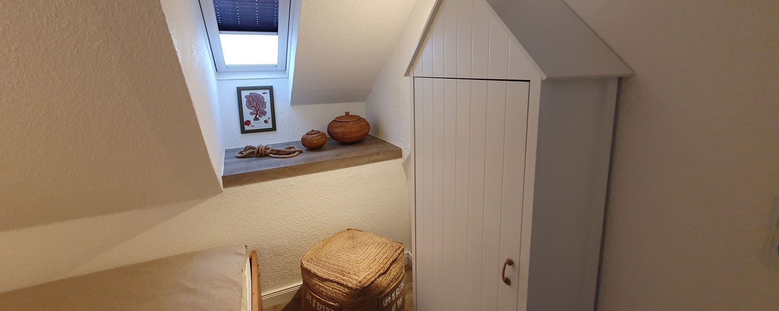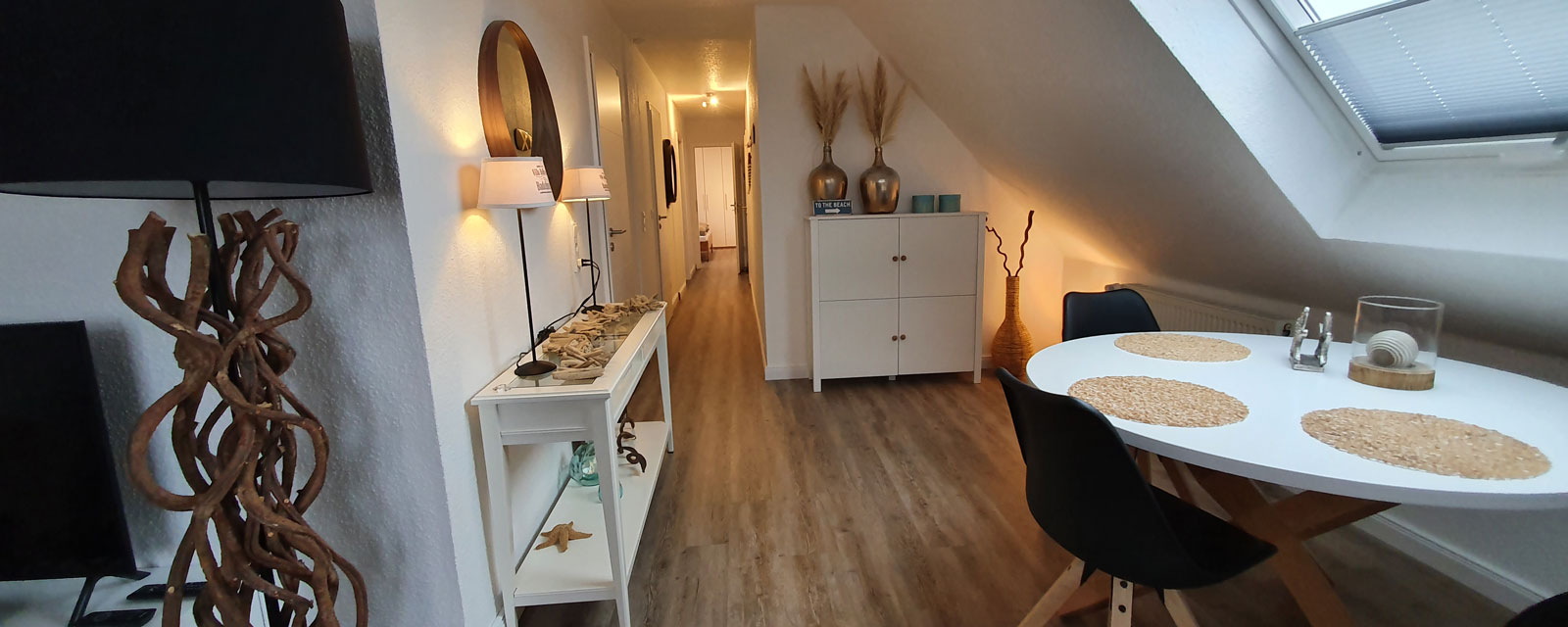 Das Appartement Bekassine verfügt über 65m2, ist für maximal 3 Personen ausgelegt und liegt im Dachgeschoss des Hauses.