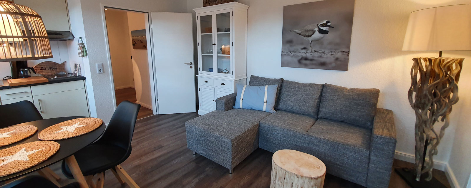 Das Appartement Regenpfeifer verfügt über 45m2, ist für maximal 3 Personen ausgelegt und liegt in der ersten Etage des Hauses.