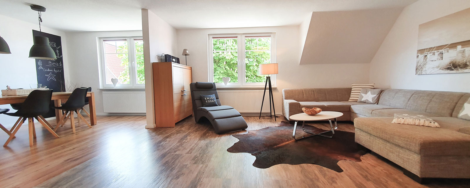 Das Appartement Strandläufer verfügt über 80m2, ist für maximal 5 Personen ausgelegt und liegt in der ersten Etage des Hauses.