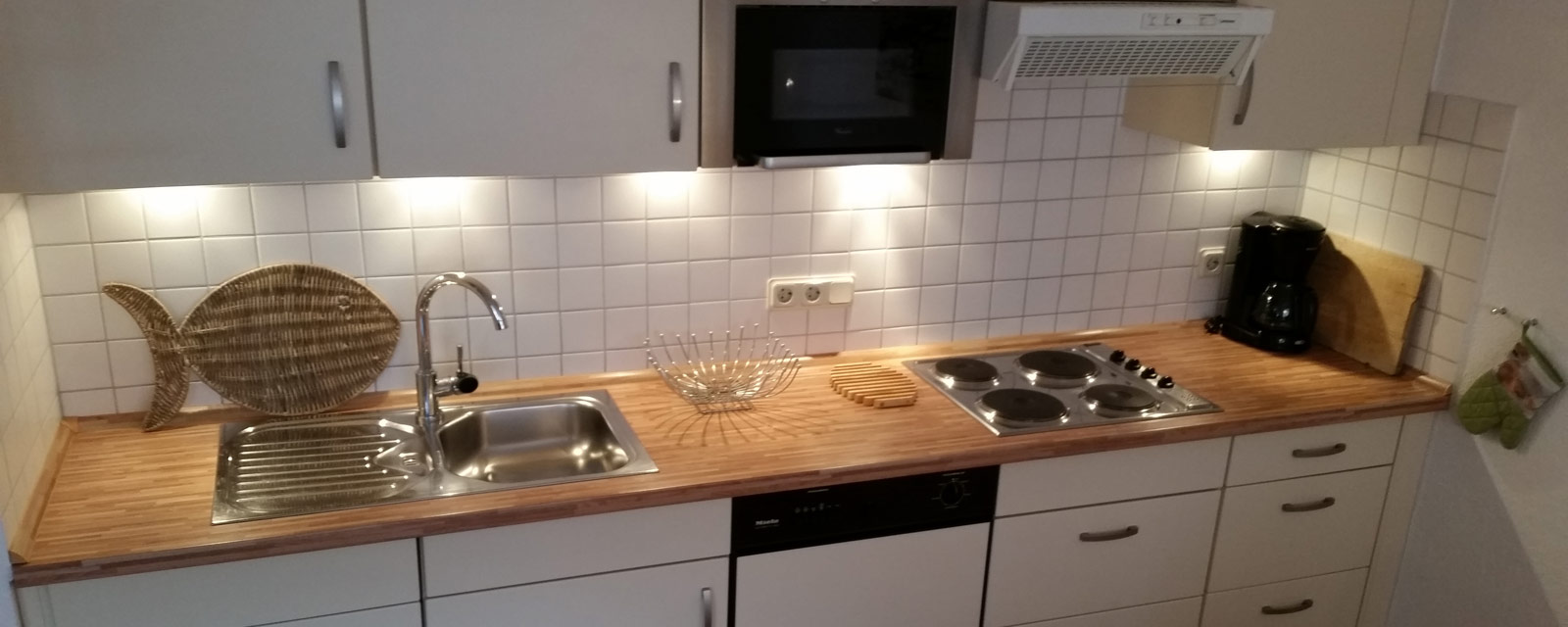 - vollausgestattete Küchenzeile mit 4 er Cerankochfeld, Spülmaschine, Kaffeemaschine und Toaster